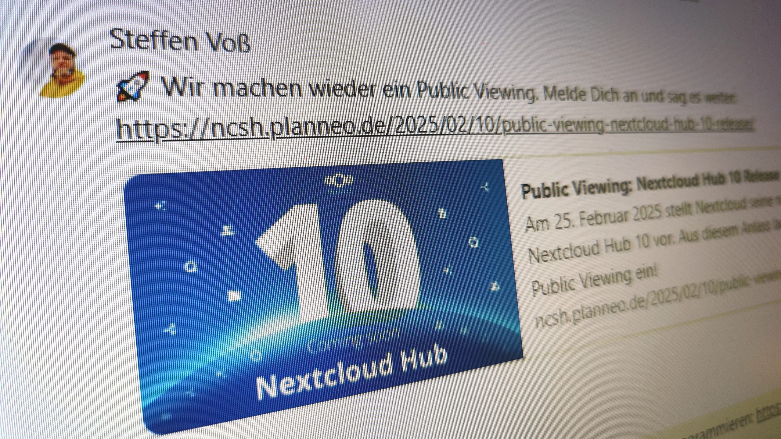 - Du benötigst mindestens Nextcloud Hub 8 (Nextcloud 29)
